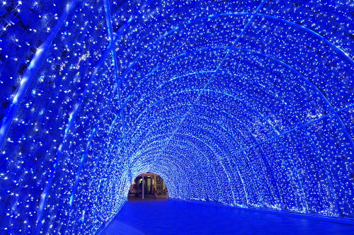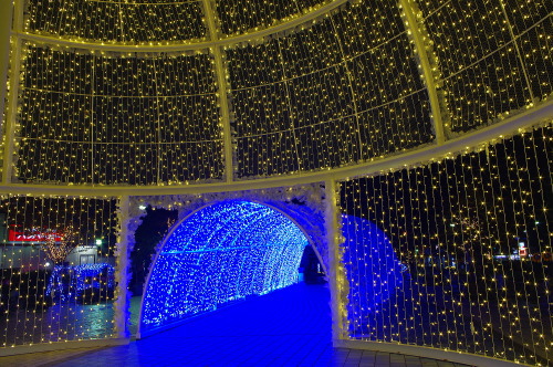 | ブルーのLED電飾のトンネル。 |