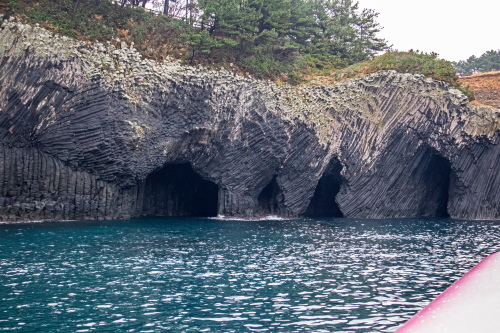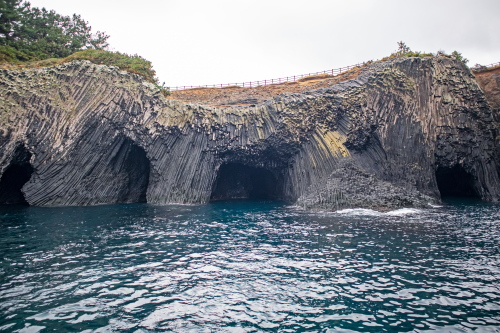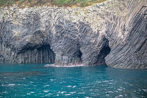七ツ釜は玄武岩がその波の荒々しさで知られる玄界灘(の荒波にさらされ浸食されてできた景勝地で国の天然記念物に指定されています。断崖は深くえぐられており自然の驚異を感じさせてくれます。7つの海食洞があるということから「七ツ釜」と名付けられたが、実際には7つ以上の洞があり、最大の穴で間口が3m・奥行きが110mの洞窟です。呼子港から出港している遊覧船「イカ丸」は出来るだけ七ツ釜の近くまで寄ってくれます。岩の形が珍しいもので火山の噴火により作られたとの事です。七ツ釜は七ツ釜園地から見る事が出来ますが、遊覧船から見た方が迫力があります。