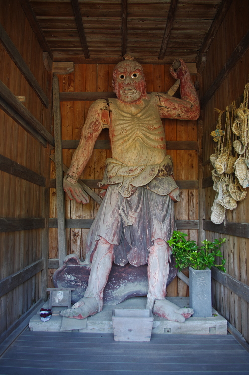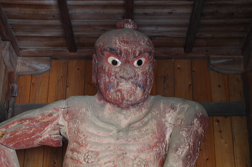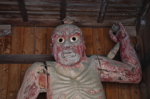 | 奈良時代・聖武天皇の勅を受けて、インドから来た清賀上人が建立した寺・夷巍寺の後とされる「二丈一貫山字一貫山」には、江戸時代に再建された仁王門と共に金剛力士像が残されています。金剛力士像は高さ2.8mほどあり、今でも地元の方によって大切に保存されています。 |