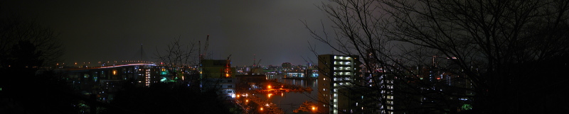 | 福岡市の西公園には、光雲神社という神社があります。その神社の東側には展望台があり、そこからの眺めは荒津大橋・博多漁港などを展望できます。夜景の規模はあまり迫力はないですが、外灯もあり雰囲気もいいので静かに観賞したいときにはいいスポットです。 |