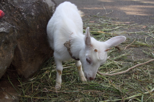 | 子ヤギが訪れる人々を出迎えてくれます。 |