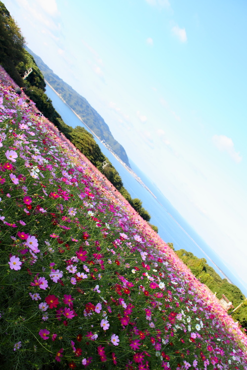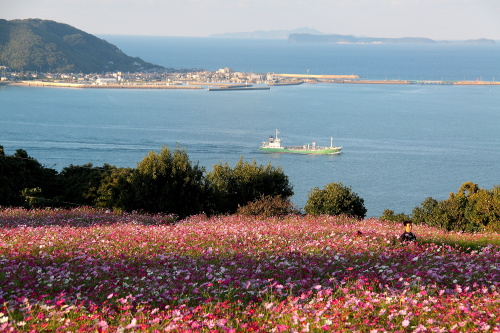 | 福岡市西区の姪浜港から船で10分・博多湾に浮かぶ能古島の北部に、季節の花が楽しめる「のこのしまアイランドパーク」があります。のこのしまアイランドパークは、家族で楽しめる施設で、季節の花の他にもヤギやうさぎが飼育されていて、芝生広場などもあり、一日ゆっくり過ごせます。また博多湾や福岡市街を展望でき、静かな環境でのんびりした時間をすごせます。 |