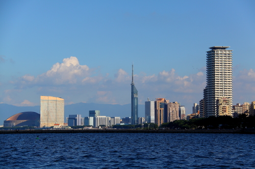 | 展望台から見た福岡市街と博多湾。 |