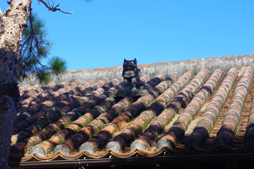 | 旧田場家の屋根にあるシーサー。 |