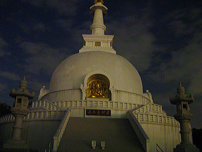 | 夜の肥前仏舎利塔。長崎と違い、ライトアップはされません。 |