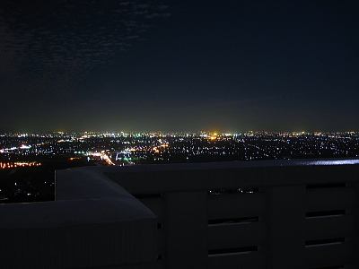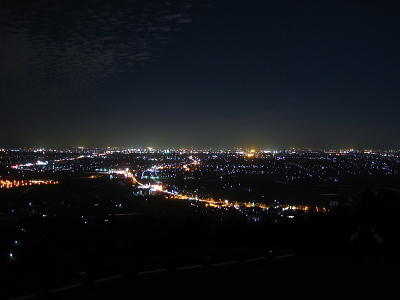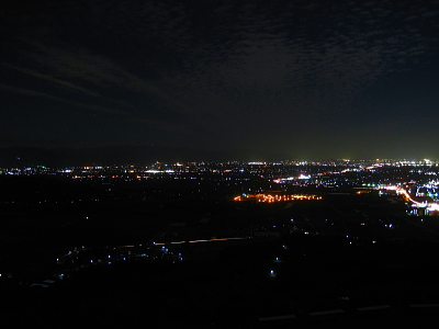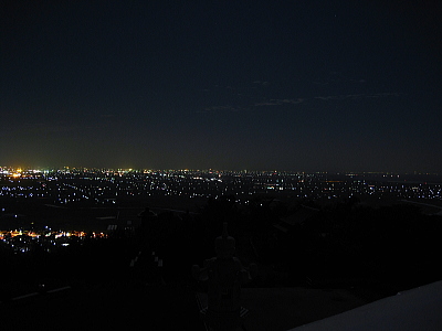 | 小城市牛津町の西の小高い山に肥前仏舎利塔があります。 ここからは160度パノラマの小城市の夜景と遠くに佐賀市の 明かりを見ることができます。 水田が多いのですが、夜になると予想以上の夜景を楽しむ ことができます。 |