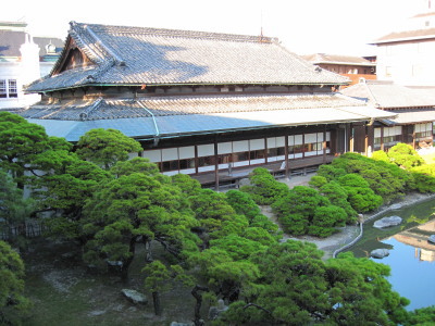 | 2階テラスから見た大広間がある和館。 |