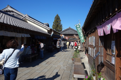 | 伊勢神宮内宮の鳥居前町・おはらい町から入ったところにあり、赤福によって1993年に開業したエリアです。伊勢路の代表的な建築物を移築・再現しているもので、飲食店・お土産店などが並び連日観光客で賑わう観光地です。 |