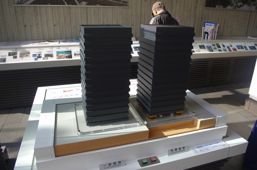 | 耐震構造の建物の説明模型。 |