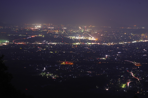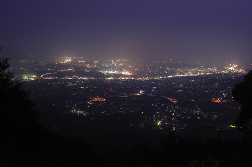 防府市の東にある標高631mの太平山に登る途中の山道から、防府市街を一望できるスポットがあります。防府バイパスを走る車の灯りや防府市街地の灯り・三田尻港周辺の工場地帯の照明などを観賞できます。
