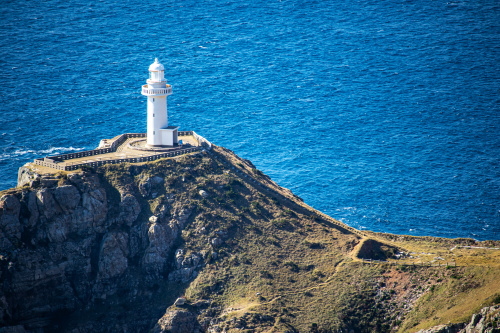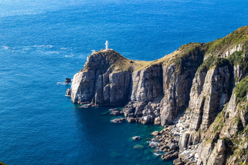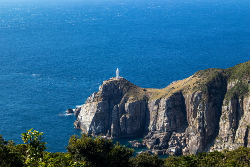 | 長崎県五島市の最西端・大瀬崎灯台は、東シナ海の荒波に削られた高さ150m・約20kmにも及ぶ海触崖が続く海岸で、その先端の断崖の標高80m地点には英国人R・プラトンの設計による灯台が1879年に初点灯された歴史があります。現在のものは1971年に改築したもので、光力は3,700カンデラ光達距離は約22kmにもおよぶ日本屈指の灯台で「日本の灯台50選」の1つに選ばれており、五島を代表する観光スポットにもなっています。 灯台が立つ大瀬崎断崖は西海国立公園の特別地域に指定されており、東シナ海の大海原や水平線・雄大な海触断崖等の眺めはとても素晴らしく、また数カ所展望台が設置されています。灯台までは遊歩道があるので行く事は出来ますが、遊歩道は勾配がきつかったりと起伏に富んでいるので体力との勝負になります。灯台迄の距離は最短で1.2kmで往復で約2時間弱と時間もかかりますので注意が必要です。 駐車場:有(無料) |