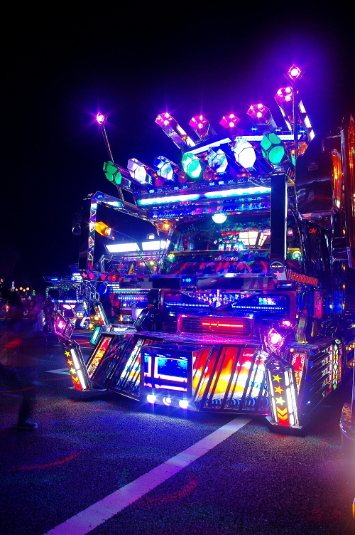 | 道の駅・おおとう桜街道に停車している派手なトラック。 |