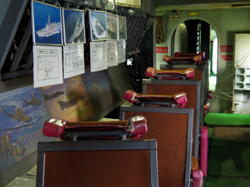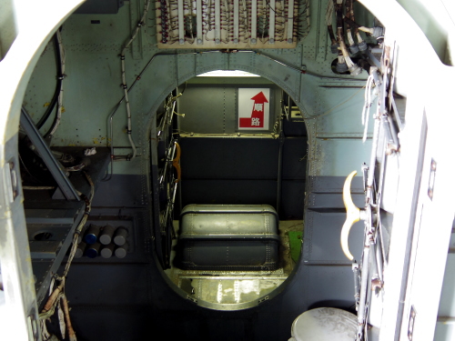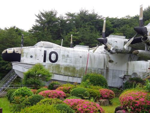 | 天草パール・センター内に展示されている航空自衛隊の航空機・PS-1型が現役を退いて岩国基地から借りられて展示されています。但し劣化がやや激しいもので、また計器類はすべて取り外されており、見て回るにはやや迫力不足気味でもあります。 |
