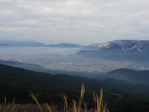湯浦展望所から阿蘇谷・外輪山を眺める。