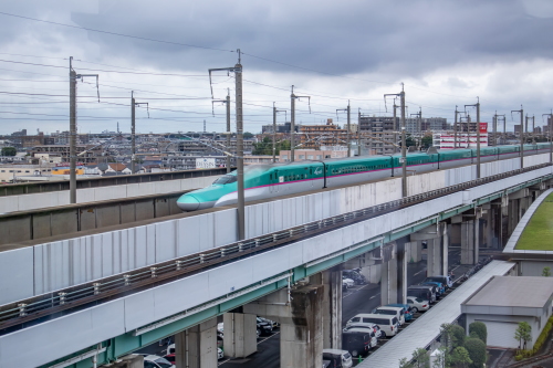 | パノラマデッキから見る東北新幹線・はやぶさ。 |