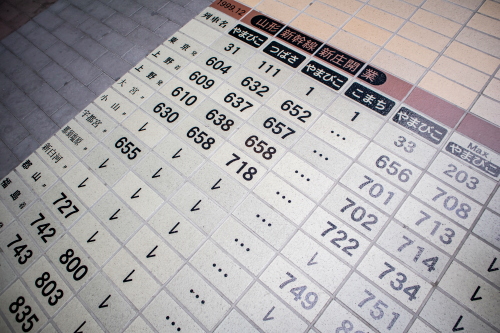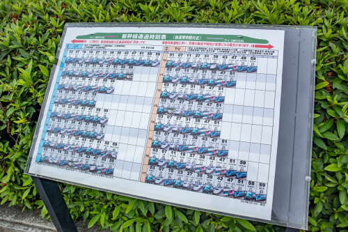 | パノラマデッキにある新幹線通過時刻表。 |