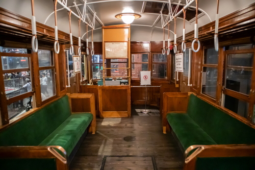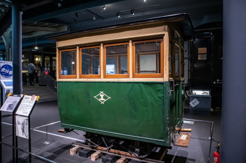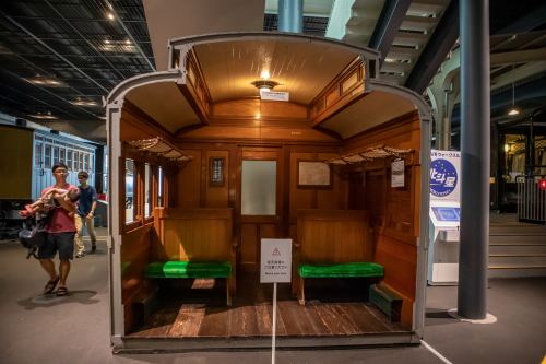 | 1階車両ステーションにある大正時代の客車を半分にしたもの。 |