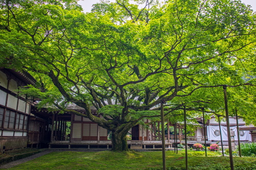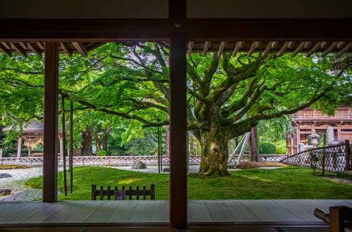 | 樹齢400年と言われる楓の木。福岡県天然記念物。 |