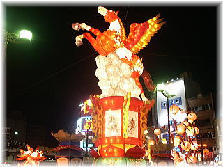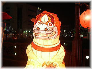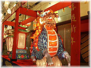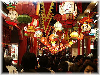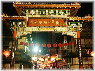 異国情緒あふれる長崎で繰り広げられる、中国色 豊かな灯りの祭典で、約1万2千個にも及ぶランタ ン(中国提灯)が飾られ、街を赤々と染めます。 このお祭りは長崎在住の華僑の人々が、中国の旧 正月(春節)を祝うための行事として始めたもので、 もともと「春節祭」として新地中華街を中心に行われ ていたものですが、平成6年から規模を拡大して長 崎全体のお祭りとして冬を飾る一大風物詩となりま した。上画像は北側の門です。 |