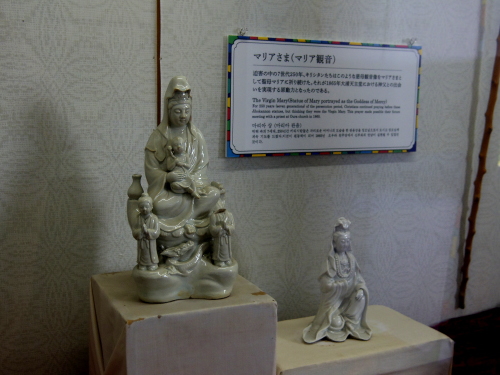 | 大浦天主堂の隣にある建物で、明治6年にキリスト教禁教が停止となり、各地に配流されていた浦上村の信徒が釈放されたのを契機として、大浦天主堂のプチジャン神父は神学校の設立を計画し、明治8年(1875)に完成。わが国初期の木骨煉瓦造りで、大正15年までラテン神学校校舎兼宿舎として使用され、以後司祭館や集会所にも使用されて昔は学校に使われていました。現在では国の重要文化財に登録されており、キリシタンの歴史を伝える資料館になっています。 |