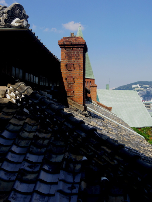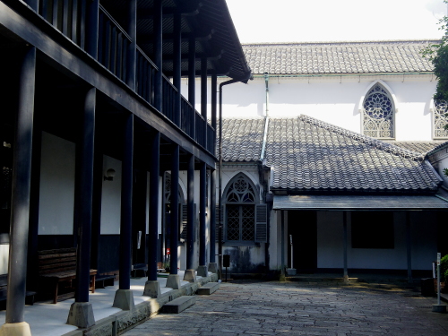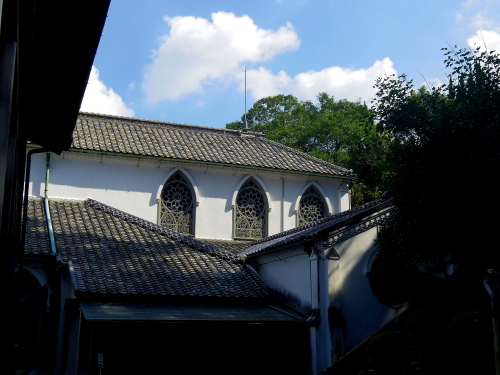 | 旧羅典神学校から大浦天主堂司祭館を眺める。 |