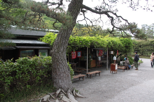 | 楓岸とよばれるところから掬月亭を眺める。 |