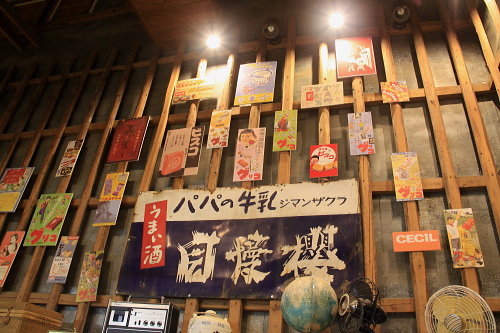 | 昭和ロマン蔵の壁に貼られている昔の広告。 |