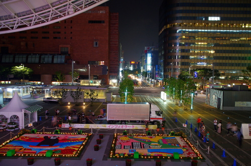 | JR博多シティでは、バラの花で飾られる「ROSE TRIP 2012」・九州4大バラ園の饗宴という事で、JR博多シティの各場所でバラのイベントが開催されています。中でも博多駅前広場では10万本のバラを使って製作された「インフィオラータ(花の絨毯)」が6月9日〜14日まで開催されます。夜になるとライトアップやキャンドルで美しい「バラの絨毯」を観賞できます。 ROSE TRIP 2012開催期間:6月1日〜6月17日 インフィオラータ開催期間:6月7日〜6月14日 |