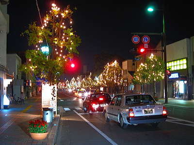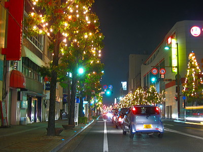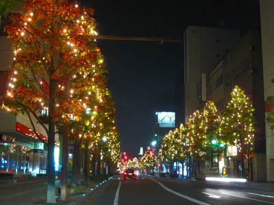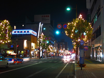 | 佐賀市のJR佐賀駅南口から佐賀中央郵便局までの中央 大通りに約80000個の電球が点灯します。バルーンフェ スタの開催にあわせて約1.5kmの街路樹が綺麗にライト アップされます。期間は新年1月上旬まで点灯します。 |