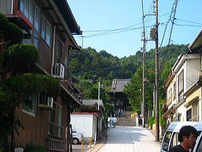 | 西國寺への参道。登り坂になってます。 ここから石段がかなりあります。 |