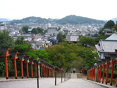 | 石段を登って振り向くと尾道の町が見えます。 |