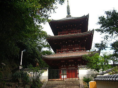 | 西國寺の境内。奥に国の重要文化財である三重塔があります。 |