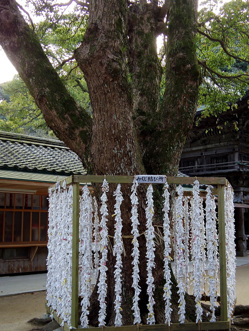 | 境内にある御神木とみくじ結び所。 |
