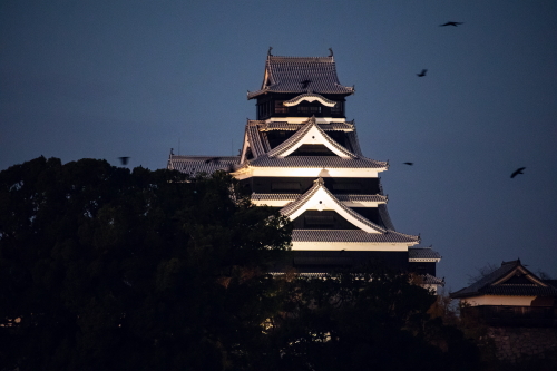 | 展望デッキから熊本城天守閣ライトアップを望む。 |