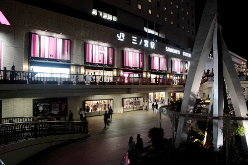 | 夜のJR三ノ宮駅。 |