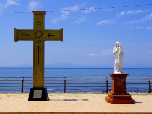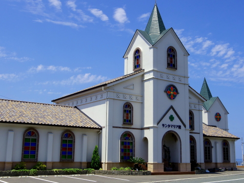 | 国道324号線の有明町区間である「ありあけタコ街道」沿い・リップルランド道路向かいに、白色の洋館であるサンタマリア館があります。隠れキリシタンの遺物の展示が行われています。建物横には十字架と聖マリア像が設置されています。 入館料:大人500円 営業時間:9:00〜18:00(4〜11月)9:00〜17:00(12〜3月) |