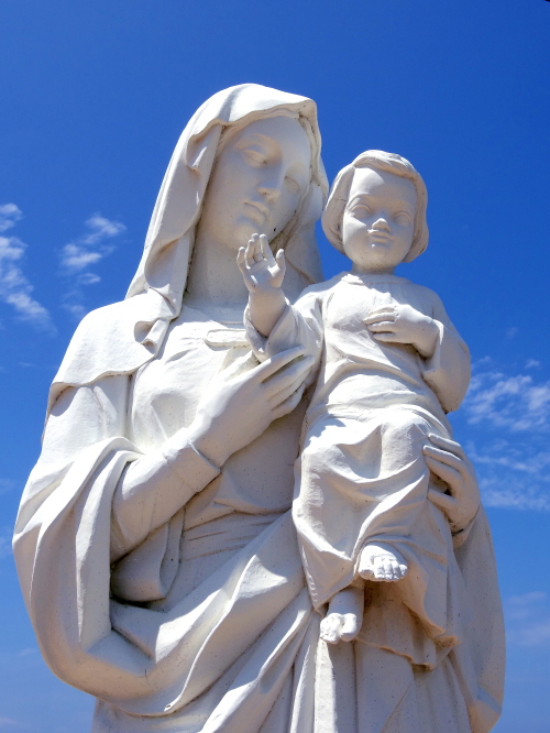 | サンタマリア館横にある十字架と聖母マリア像。 |