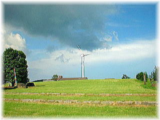 山茶花高原に立つ風車。