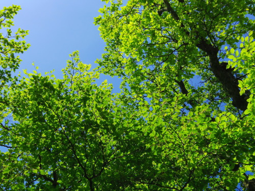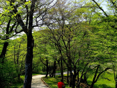 | 脊振山の駐車場にある新緑。 |