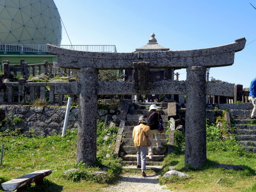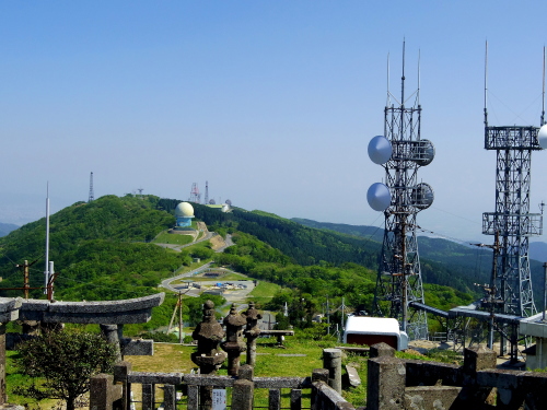 | 脊振神社上宮から航空自衛隊脊振山分屯基地を眺める。 |
