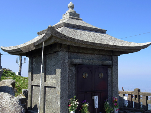 | 石の祠である脊振神社上宮。 |