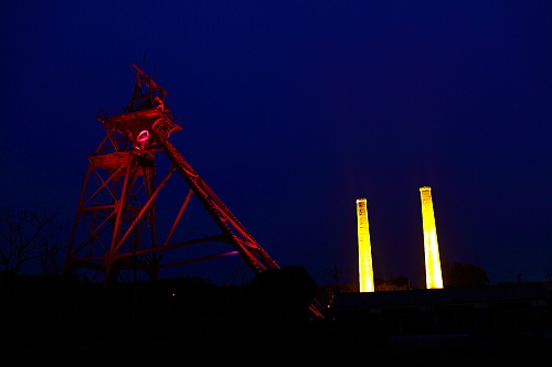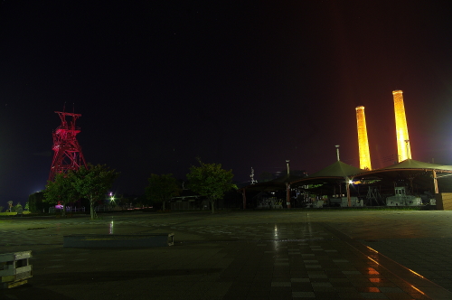 (旧三井田川鉱業所伊田竪坑櫓/第一・第二煙突ライトアップ)