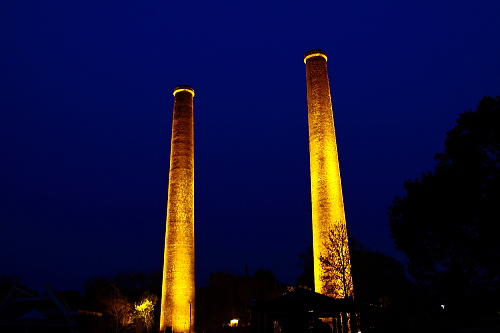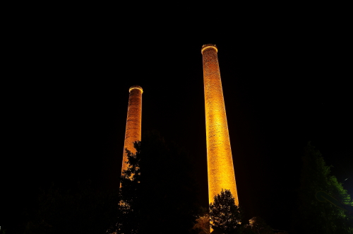 | 旧三井田川鉱業所 第一・第二煙突ライトアップ。 |