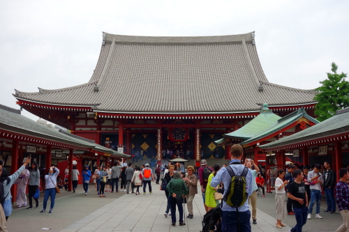 | 浅草にある浅草寺は約1400年の歴史がある東京都最古の寺院で、本尊は聖観音菩薩になります。関東大震災時は仲見世は全焼するも本堂は被災を免れましたが、第二次世界大戦でほとんどの建物は焼失してしまい、現在の建物は戦後に再建されたものです。観光客は修学旅行生の他に外国からの観光客も多く、仲見世通りからたくさんの観光客で賑わう観光名所です。 |