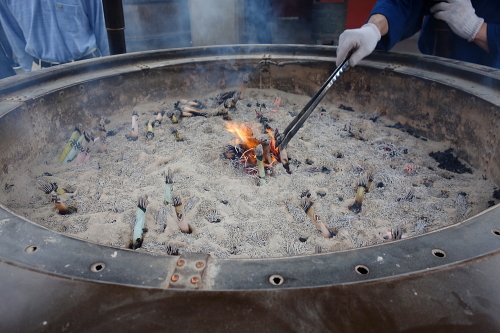 | 常香炉の線香。自分自身の汚れを落とします。 |