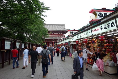 | 沢山の観光客で賑わう仲見世通り。 |