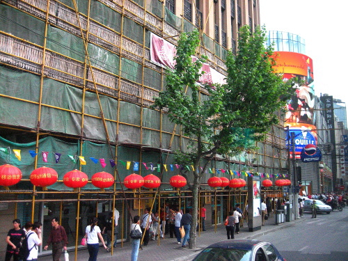 | 上海市内の建設現場。竹の足場です。 |