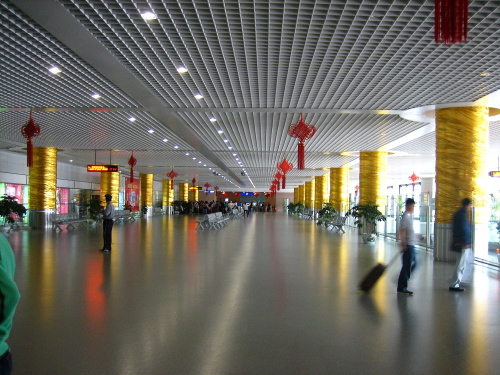 | 上海浦東国際空港からリニアモーターカー駅に向かうロビー。 |