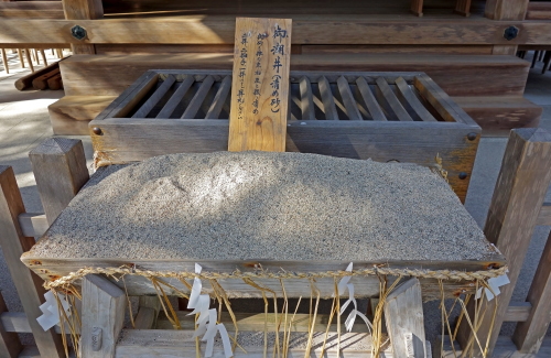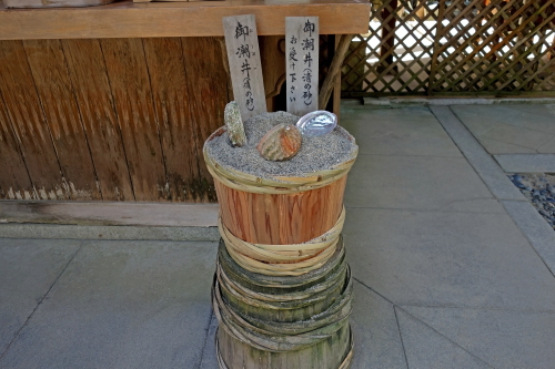 | 拝殿前にある御潮井と呼ばれる清め砂で身を清めます。 |