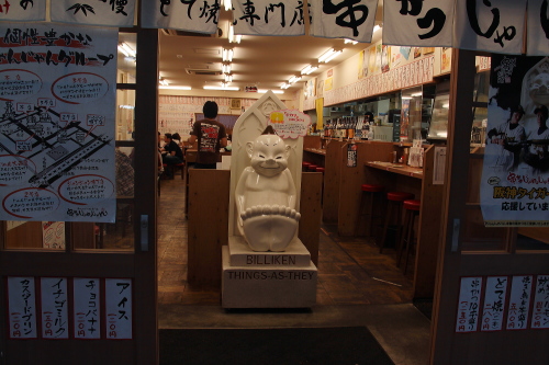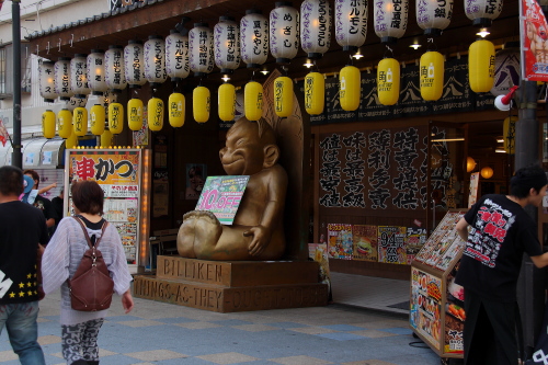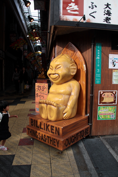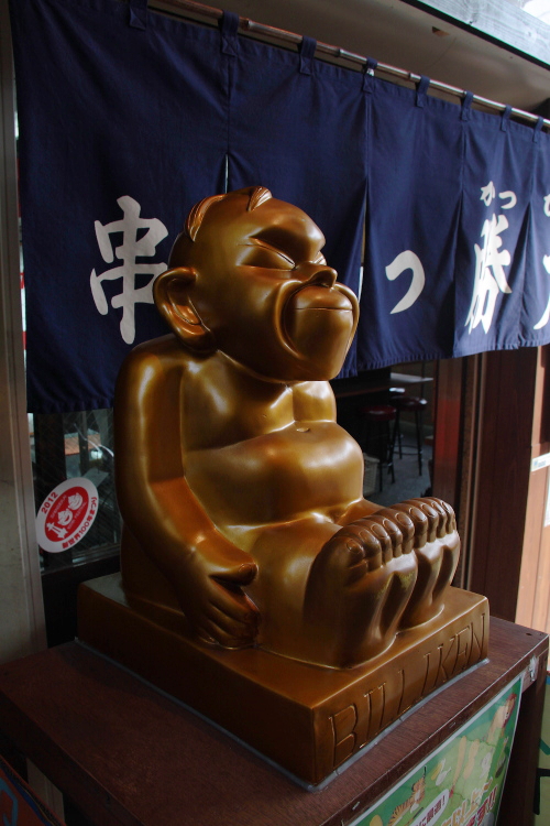 | 大きな串カツ屋の前にある大きなビリケン像。 |